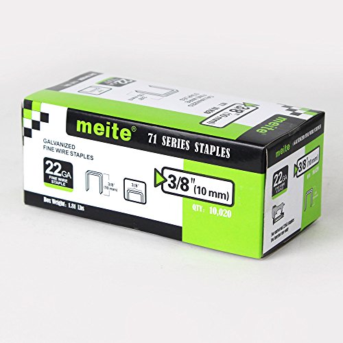 - Product Name: meite 22GA 71Series 3/8-Inch Crown By Leg Length 3/8-Inch 22G71S38 Galvanized Fine Wire Staples(10000pcs/Box)